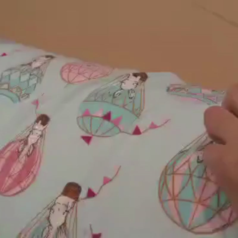 Rabbit FLANNEL, Rabbit in Air ballon on Light Peppermint Green