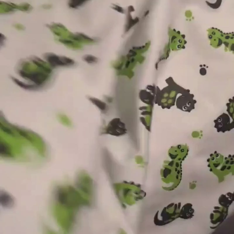 Baby Dinosaur FLANNEL, Gray and Green on White