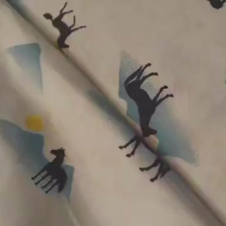 Feel the 🔥 of the wild west with our 🐎 FLANNEL fabric! With its black stallion 🐎 and green mountain 🗻 set against a 🍨 background, this cotton flannel will bring western style to any project! 🤠