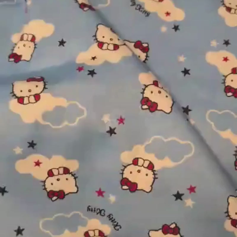 Cozy up with our Kitty Cat FLANNEL! Featuring adorable kitties and dreamy clouds and stars on a light blue background, this soft and warm fabric will keep you purrfectly comfy. Make your snuggles even more fun with this playful print. (Kitty cat not included!)