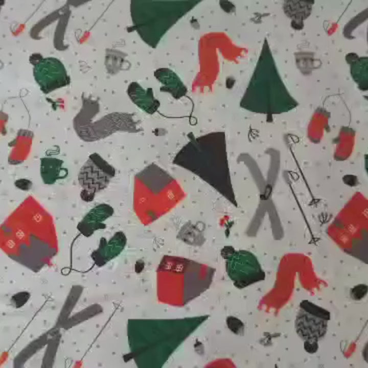 Alpine Winter Fabric on White, Skiing Fabric, Cotton Fabric