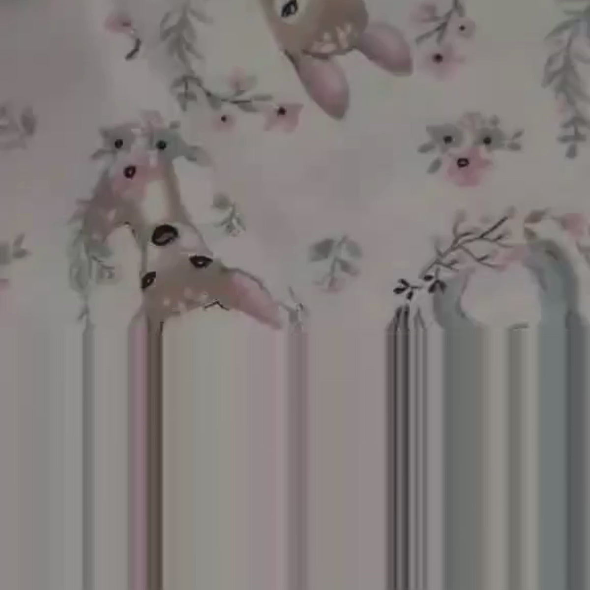 Design: Baby deer and squirrels with floral wreaths in pink and grey on white