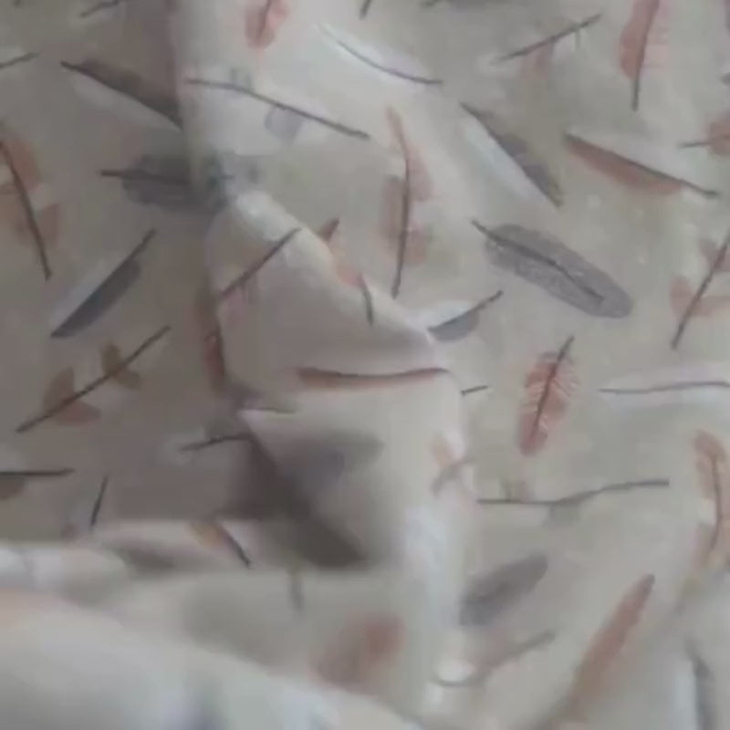 Experience luxurious softness with this Brown, Grey, and White Feather FLANNEL on Tan. Perfect for creating cozy baby crib sheets and receiving blankets. Add a touch of whimsy to your nursery with this playful and versatile fabric.
